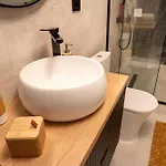 L'appartement dispose d'une salle de bains avec sèche-cheveux, peignoirs de bain et bonnet de douche. De plus, vous trouverez une douche à l'italienne et une toilette séparée.